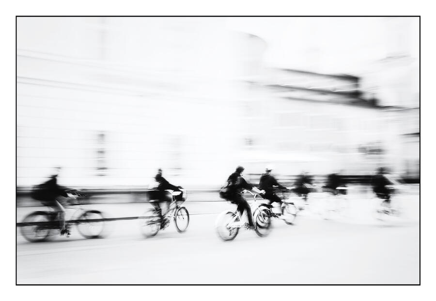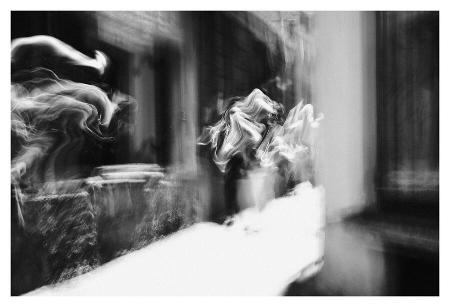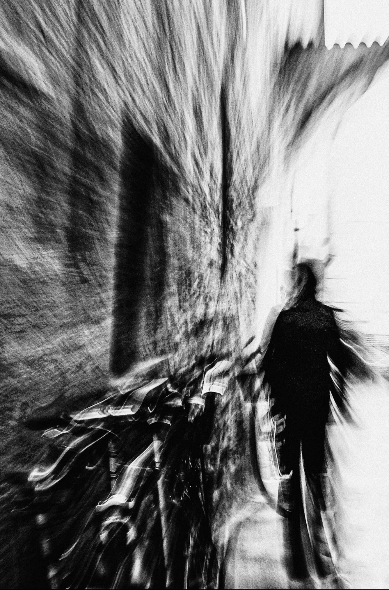 Ich wusste nicht immer, dass ich Fotografin werden würde. Tatsächlich nahm ich 2016 die erste Kamera in die Hand, aus einem tiefen Bedürfnis nach Heilung, um die Welt um mich herum zu verarbeiten. Was als eine Reaktion auf Angst und Unruhe begann, wurde schnell zu meiner Zuflucht – einem Raum, in dem das Chaos der Welt in etwas Schönes und Sinnvolles verwandelt werden konnte.Meine lebenslange Liebe zu Menschen, ihren Geschichten und den Emotionen, die sie tragen, inspiriert mich immer wieder.Seitdem hatte ich das Vergnügen, mit Fujifilm UK an mehreren Projekten zu arbeiten, und meine Arbeiten zieren nun die Wände von Wohnungen und Büros – von den charmanten Straßen Salzburgs, über die frische Luft Stockholms, bis hin zur lebendigen Energie San Franciscos.Es erfüllt mich, ICM und Mehrfachbelichtung zu unterrichten und meine Schüler auf ihrem Weg zu begleiten, ihre ganz eigene, einzigartige Ausdrucksweise zu finden. Sie sind für mich nie „nur“ Schüler; die meisten bleiben in Kontakt, und unser gemeinsamer Weg geht weit über die Workshops hinaus.Neben meiner kreativen Fotografie liebe ich es, die rohen, ungeschönten Momente des Alltags festzuhalten – sei es für mich selbst oder für meine Kunden. Kürzlich habe ich ein Porträtprojekt namens Faces of Austria* begonnen, das ich bald auf einer eigenen Webseite präsentieren werde.Ich war bereits Gast in mehreren Podcasts und finde große Erfüllung darin, über Fotografie und ihre Bedeutung mit Menschen aus allen Lebensbereichen zu sprechen.2018 begann ich mit Intentional Camera Movement (ICM), um Menschen zu fotografieren, ohne in ihre Privatsphäre einzudringen – ein Workaround in einer Welt, in der Überwachung allgegenwärtig ist. Doch was zunächst als eine Möglichkeit, die Würde der Menschen zu wahren, entstand, entwickelte sich zu einer viel tieferen, kreativen Reise. ICM wurde meine eigene Sprache – eine Art, die Rhythmen, Emotionen und Geschichten einzufangen, die im alltäglichen Leben verborgen sind, ohne dass jedes Detail scharf oder perfekt eingefangen werden muss.Die Unschärfe ist kein Fehler. Sie ist meine Wahl, meine Art, die Wahrheit zu erfassen. Sie sind Stimmungen, die sichtbar gemacht wurden.Ich wurde in England geboren, lebe jedoch mittlerweile seit fast 20 Jahren in den Bergen Salzburgs. Ich finde Freude in den kleinen Dingen – einem Stiegl Bier, Lachen, einem Spaziergang durch die Stadt und den kleinen Akten der Menschlichkeit, die das Leben realer machen.Ich lebe mit ADHS, und es prägt meine chaotische Art zu denken und zu leben. Aber gerade in dieser Unordnung finde ich meine Kreativität. Es ist eine Reise der Unvollkommenheit, die mich immer wieder dazu bringt, die Welt auf neue, unerforschte Weise zu sehen. Ich fotografiere in Schwarz-Weiß, weil mein ADHS-Gehirn Klarheit und Kontrast braucht, um mich auf Licht, Emotionen und Geschichten zu konzentrieren.Ich glaube nicht an Perfektion. Ich glaube an Authentizität – an das Umarmen dessen, wer wir sind, ohne Entschuldigung.