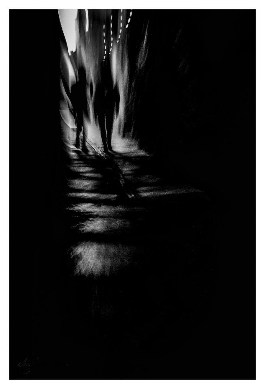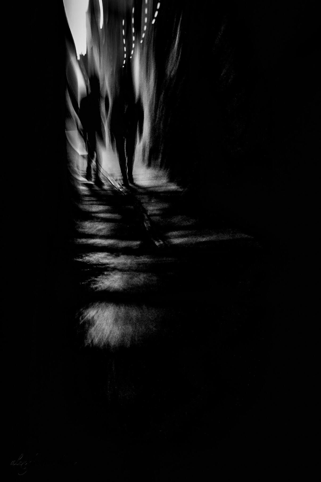 DIE VERLORENEN GÄSTEDiese Gasse war nicht auf der Karte. Sie auch nicht, sie waren Gäste der Gespenster-Tour von gestern Abend, machten einen falschen Abzweig durch einen Lichtstrahl und landeten hier, in diesem Zwischenraum. Ein Tunnel, der leise summt und schwach nach Lavendel und alten Geheimnissen riecht.Ich kam nur, um die Schatten zu fotografieren. Aber jetzt schauen sie mich an, als hätten sie auf mich gewartet. Und ehrlich gesagt… das Licht ist irgendwie perfekt.Vorsicht, was du verwischst. Es gibt Orte, die kannst du nicht mehr entsehen.