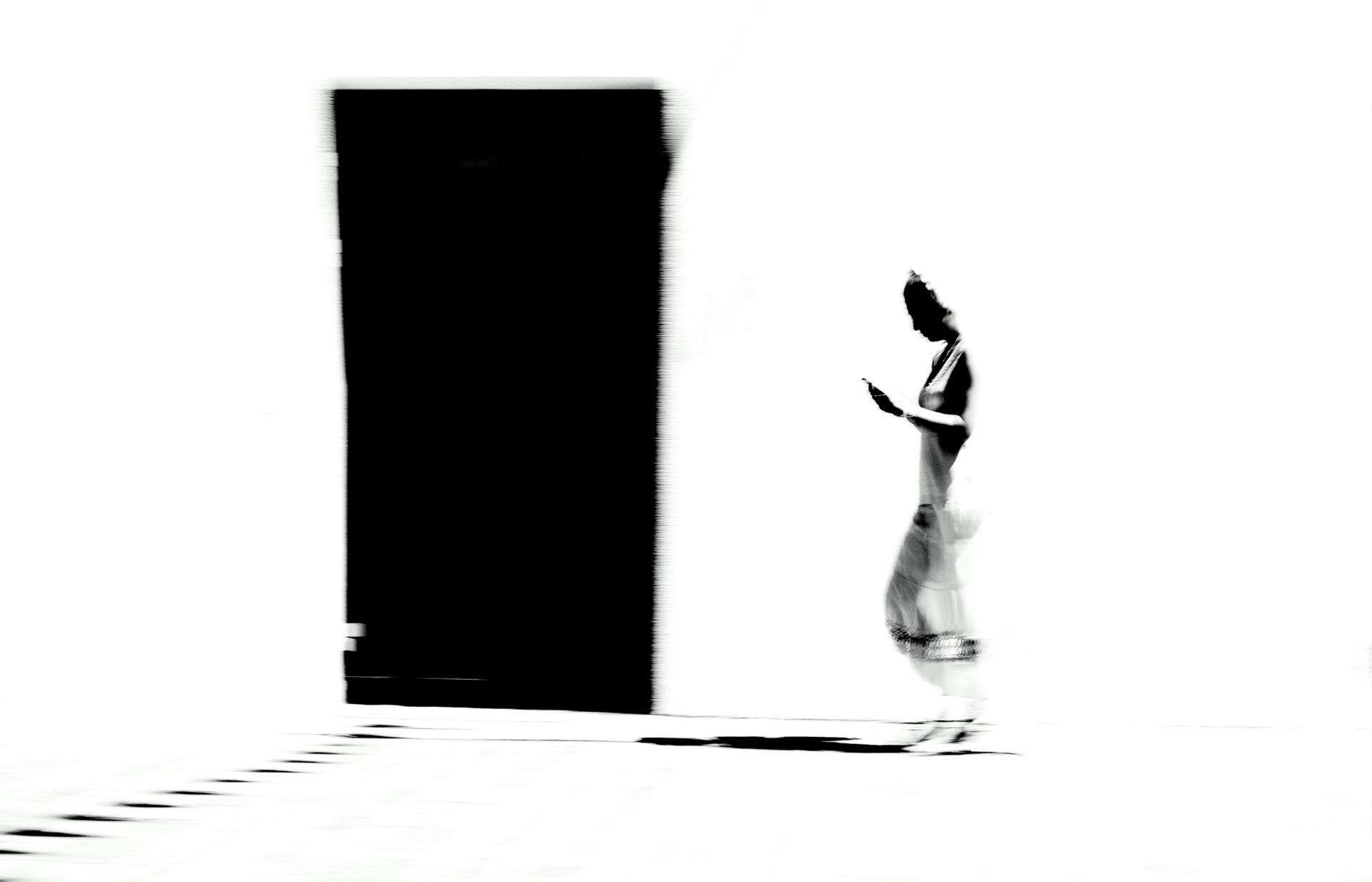 WENN DAS LICHT DER WELT ZU VIEL WIRDSie sah nie auf, nicht einmal. Die Welt um sie herum verschob sich, tanzte, verschwomm zu Weichheit, aber ihr Blick blieb fest auf dem Bildschirm. Eine halbe Präsenz. Ein Geist des Jetzt.Und doch... spürte ich etwas Verwundbares in ihrer Abwesenheit. Als ob das Handy nicht nur eine Ablenkung war, sondern ein Schild. Ein Ort, an dem man sich verstecken kann, wenn das Licht zu viel wird, wenn die Welt sich anfühlt wie zu viele Fragen.Sie ging vorbei wie ein Flüstern. Nicht ganz hier, nicht ganz fort. Eine moderne Silhouette in einem alten Rahmen.