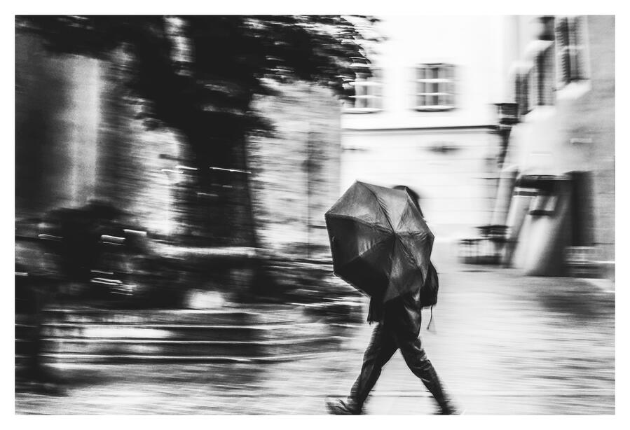 Da stand ich, wie jeder gute Chaos-liebende Fotografin, im Türrahmen, als mich diese Regenschirm-schwingende Person entdeckte!Mit militärischer Präzision drehte sie sich, schwang ihren Regenschirm in meine Linse wie eine Kriegerin im Kampf gegen Unschärfe... und marschierte aus dem Bild, als wäre es eine Protestparade. Was sie nicht wusste: Es war schon zu spät. Ich hatte ihre Empörung gekontert und ihren Protest in Performance-Kunst verwandelt.Denn genau das macht ICM. Es liefert die Geschichte ohne den Skandal, die Energie ohne den Beweis und den Moment, nicht das Polizeifoto. Das ist Kunst. Unscharf entsprechend!