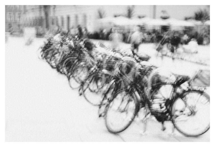 FAST SCHWEIGENMozartplatz, kurz nach Sonnenaufgang. Die Luft ist noch kühl, der Platz unendlich weit und leer, und ich bin mir nicht sicher, warum ich so früh hier bin – bis sie kommt.Sie eilt nicht. Ihr Fahrrad mit Korb gleitet sanft über die Kopfsteinpflaster. Ihr Kleid fängt einen Hauch von Wind ein. Sie besitzt die Stille, ohne es zu wissen, und ich bewege mich nicht. Ich sehe einfach zu.Für ein paar Sekunden sind wir nur wir. Sie, ich und der lange Schatten einer Stadt, die erwacht. Sie ist weg, bevor ich überhaupt an einen Titel denken kann. Aber ich benenne sie trotzdem in meinem Kopf.