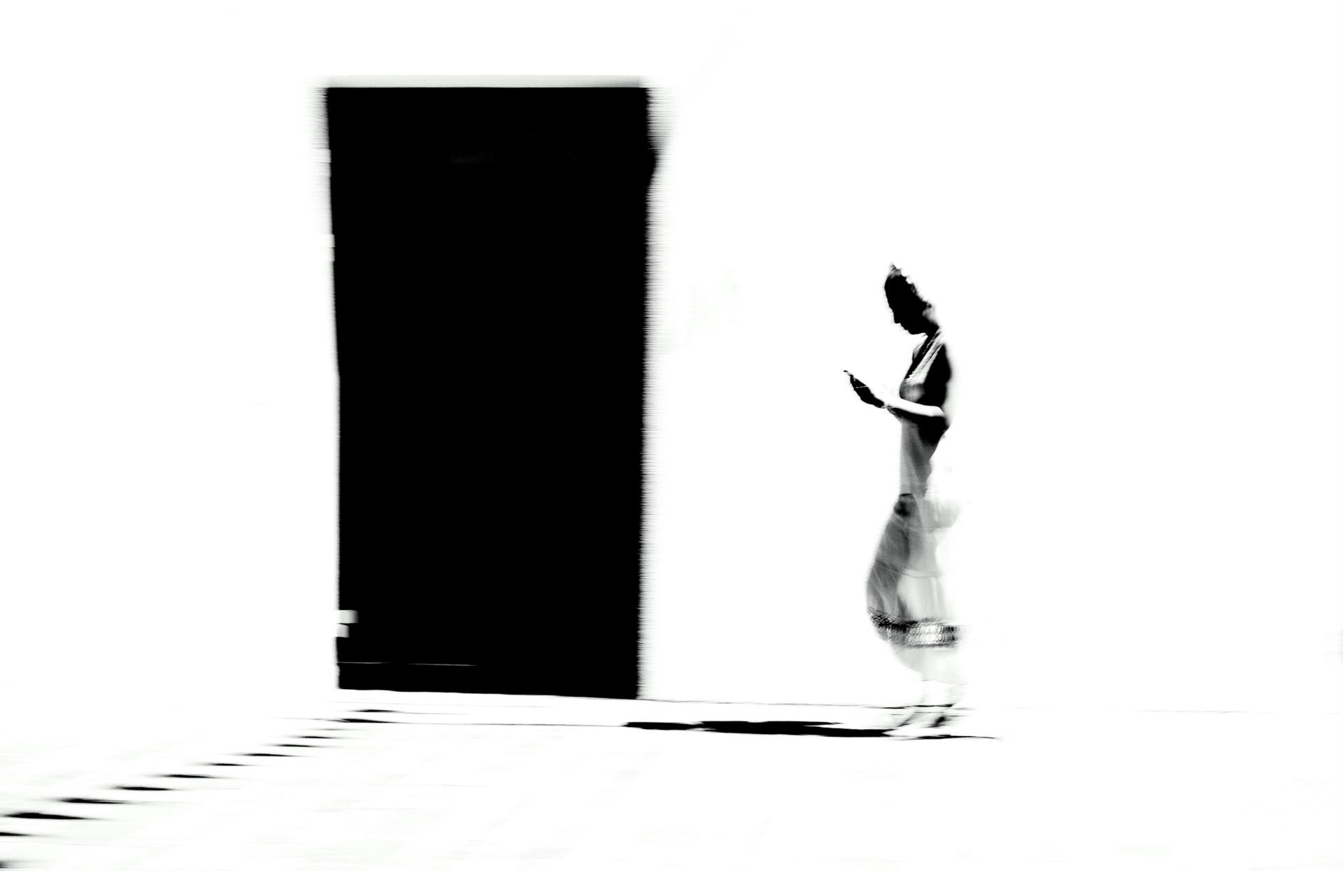 WENN DAS LICHT DER WELT ZU VIEL WIRDSie sah nie auf, nicht einmal. Die Welt um sie herum verschob sich, tanzte, verschwomm zu Weichheit, aber ihr Blick blieb fest auf dem Bildschirm. Eine halbe Präsenz. Ein Geist des Jetzt.Und doch... spürte ich etwas Verwundbares in ihrer Abwesenheit. Als ob das Handy nicht nur eine Ablenkung war, sondern ein Schild. Ein Ort, an dem man sich verstecken kann, wenn das Licht zu viel wird, wenn die Welt sich anfühlt wie zu viele Fragen.Sie ging vorbei wie ein Flüstern. Nicht ganz hier, nicht ganz fort. Eine moderne Silhouette in einem alten Rahmen.