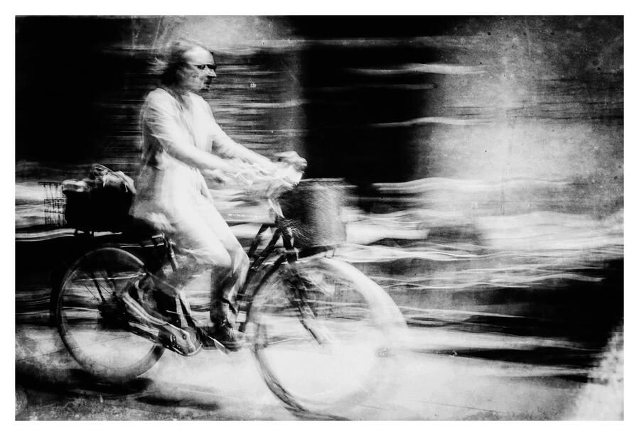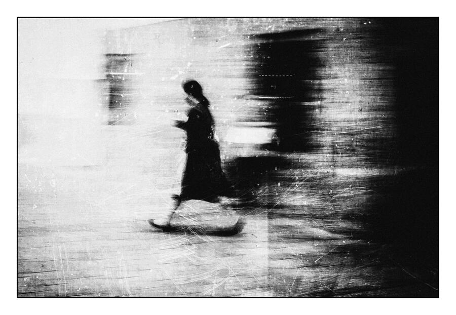 Ich wusste nicht immer, dass ich Fotografin werden würde. Tatsächlich nahm ich 2016 die erste Kamera in die Hand, aus einem tiefen Bedürfnis nach Heilung, um die Welt um mich herum zu verarbeiten. Was als eine Reaktion auf Angst und Unruhe begann, wurde schnell zu meiner Zuflucht – einem Raum, in dem das Chaos der Welt in etwas Schönes und Sinnvolles verwandelt werden konnte.Meine lebenslange Liebe zu Menschen, ihren Geschichten und den Emotionen, die sie tragen, inspiriert mich immer wieder.Seitdem hatte ich das Vergnügen, mit Fujifilm UK an mehreren Projekten zu arbeiten, und meine Arbeiten zieren nun die Wände von Wohnungen und Büros – von den charmanten Straßen Salzburgs, über die frische Luft Stockholms, bis hin zur lebendigen Energie San Franciscos.Es erfüllt mich, ICM und Mehrfachbelichtung zu unterrichten und meine Schüler auf ihrem Weg zu begleiten, ihre ganz eigene, einzigartige Ausdrucksweise zu finden. Sie sind für mich nie „nur“ Schüler; die meisten bleiben in Kontakt, und unser gemeinsamer Weg geht weit über die Workshops hinaus.Neben meiner kreativen Fotografie liebe ich es, die rohen, ungeschönten Momente des Alltags festzuhalten – sei es für mich selbst oder für meine Kunden. Kürzlich habe ich ein Porträtprojekt namens Faces of Austria* begonnen, das ich bald auf einer eigenen Webseite präsentieren werde.Ich war bereits Gast in mehreren Podcasts und finde große Erfüllung darin, über Fotografie und ihre Bedeutung mit Menschen aus allen Lebensbereichen zu sprechen.2018 begann ich mit Intentional Camera Movement (ICM), um Menschen zu fotografieren, ohne in ihre Privatsphäre einzudringen – ein Workaround in einer Welt, in der Überwachung allgegenwärtig ist. Doch was zunächst als eine Möglichkeit, die Würde der Menschen zu wahren, entstand, entwickelte sich zu einer viel tieferen, kreativen Reise. ICM wurde meine eigene Sprache – eine Art, die Rhythmen, Emotionen und Geschichten einzufangen, die im alltäglichen Leben verborgen sind, ohne dass jedes Detail scharf oder perfekt eingefangen werden muss.Die Unschärfe ist kein Fehler. Sie ist meine Wahl, meine Art, die Wahrheit zu erfassen. Sie sind Stimmungen, die sichtbar gemacht wurden.Ich wurde in England geboren, lebe jedoch mittlerweile seit fast 20 Jahren in den Bergen Salzburgs. Ich finde Freude in den kleinen Dingen – einem Stiegl Bier, Lachen, einem Spaziergang durch die Stadt und den kleinen Akten der Menschlichkeit, die das Leben realer machen.Ich lebe mit ADHS, und es prägt meine chaotische Art zu denken und zu leben. Aber gerade in dieser Unordnung finde ich meine Kreativität. Es ist eine Reise der Unvollkommenheit, die mich immer wieder dazu bringt, die Welt auf neue, unerforschte Weise zu sehen. Ich fotografiere in Schwarz-Weiß, weil mein ADHS-Gehirn Klarheit und Kontrast braucht, um mich auf Licht, Emotionen und Geschichten zu konzentrieren.Ich glaube nicht an Perfektion. Ich glaube an Authentizität – an das Umarmen dessen, wer wir sind, ohne Entschuldigung.